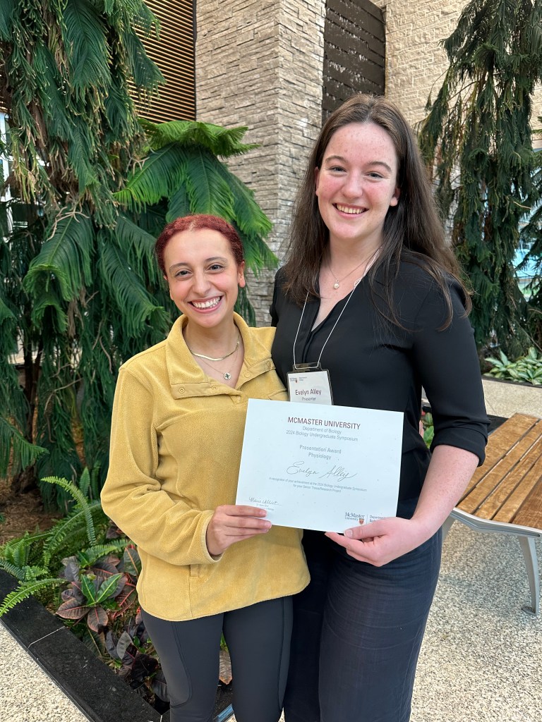 Congratulations to our undergrad thesis students – Evelyn, Joyce, Mya, and Sonia – for making the Scott Lab proud at the 2024 McMaster Biology Undergraduate Symposium! Great work everyone!