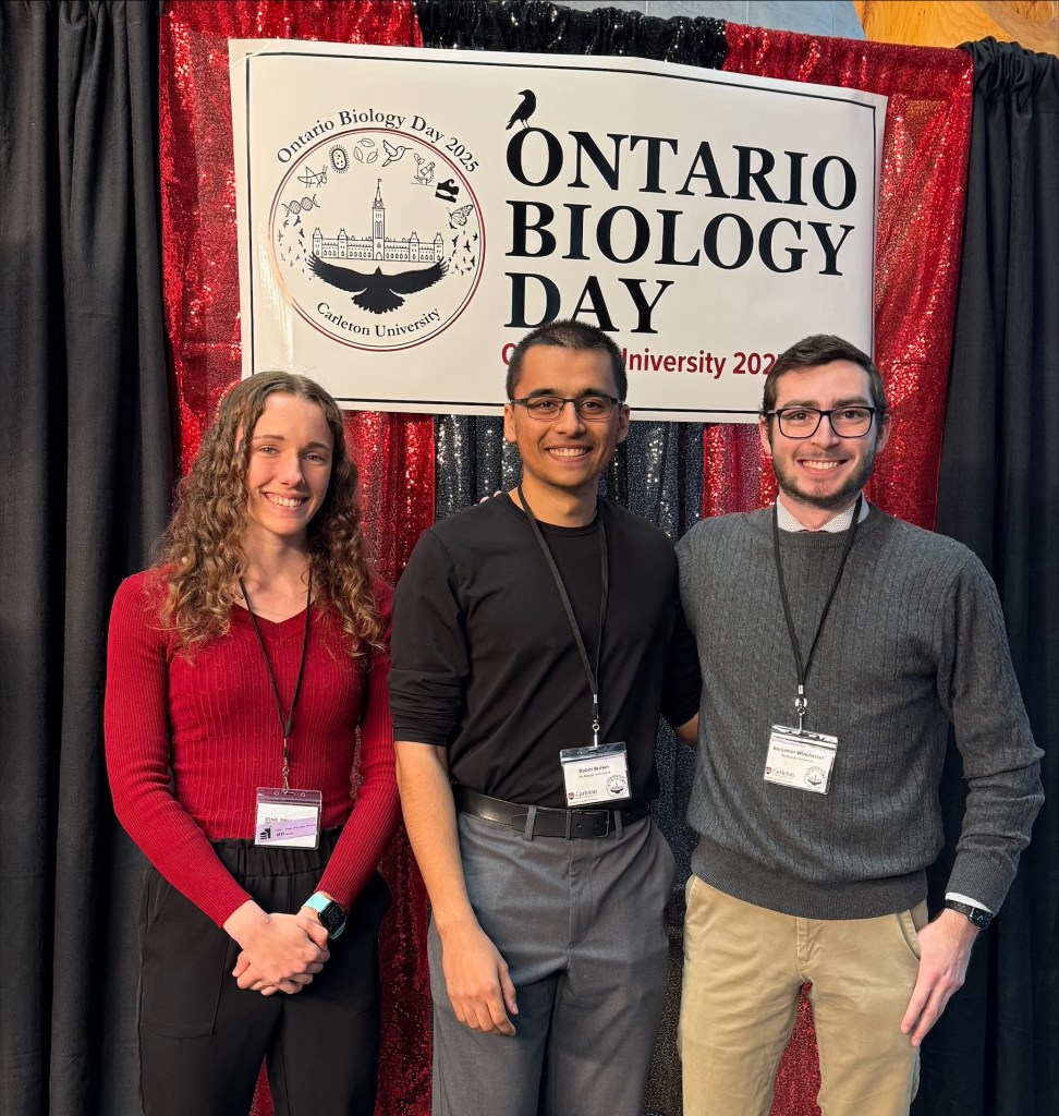 The Scott Lab was well represented at the 37th annual Ontario Biology Day conference at Carleton University! Thesis students Jessica Yemen, Robin Brown, and Ben Winchester presented their thesis research among undergrad students from across the province. Congrats on jobs well done!