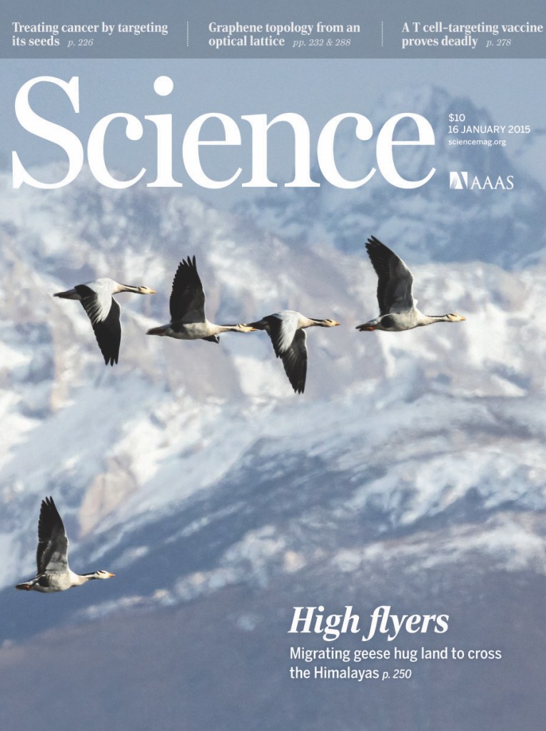 Bishop CM, Spivey RJ, Hawkes LA, Batbayar N, Chua B, Frappell PB, Milsom WK, Natsagdorj T, Newman SH, Scott GR, Takekawa JY, Wikelski M, Butler PJ. 2015. The roller coaster flight strategy of bar-headed geese conserves energy during Himalayan migrations. Science. 347, 250-254. [Outside JEB Feature] [Science News] [New Scientist] [NPR Radio] [Quirks & Quarks]